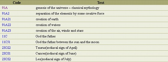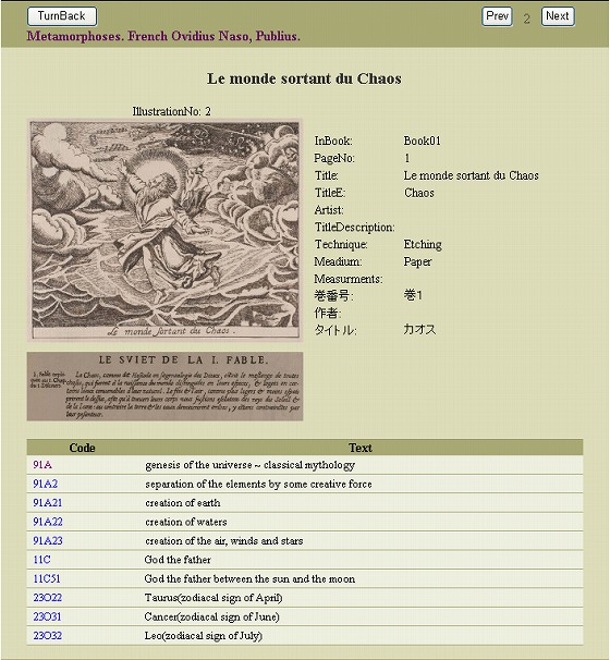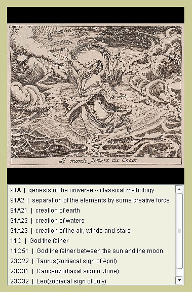 Iconclass分類コードから、同じ分類コードを含む挿絵を検索可能です。