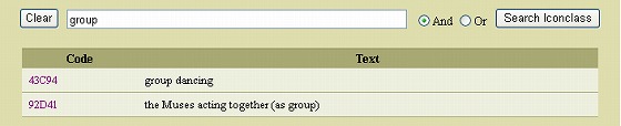 Iconclass code分類コードやIconclass notation主題表記に含まれる単語を入力して検索が可能です。