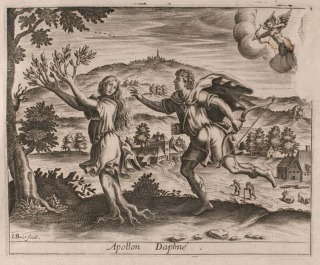 Daphne changed into a laurel-tree: while fleeing from Apollo, Daphne is changed into a laurel-tree by her father Peneus (Ovid, Metamorphoses I 548)