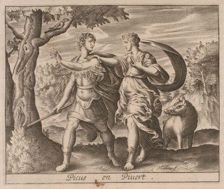 Picus changed into a woodpecker: Circe changes Picus into a woodpecker because, faithful to his wife Canens, he spurns the love of the goddess (Ovid, Metamorphoses XIV 386)