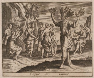 the Apulian shepherd changed into an oleaster: the Apulian shepherd is changed into an oleaster as punishment for mocking dancing nymphs (Ovid, Metamorphoses XIV 521)