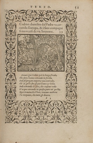 Cadmo sbandito dal Padre va cercando Europa, & I suoi compagni sono uccisi da un Serpente