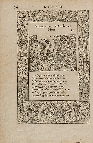 Actaeon changed into a stag: as punishment for seeing her bathe, Diana changes Actaeon, the hunter, into a stag (Ovid, Metamorphoses III 193)
