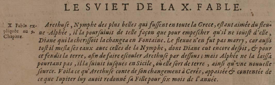 Arethusa changed into a fountain: Diana changes her attendant Arethusa into a fountain, after first having hidden her in a cloud to escape Alpheus, the river-god (Ovid, Metamorphoses V 621)