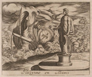 Alcyone and Ceyx changed into kingfishers: when Alcyone finds the body of her husband Ceyx washed ashore, they are both changed into kingfishers (Ovid, Metamorphoses XI 741)
